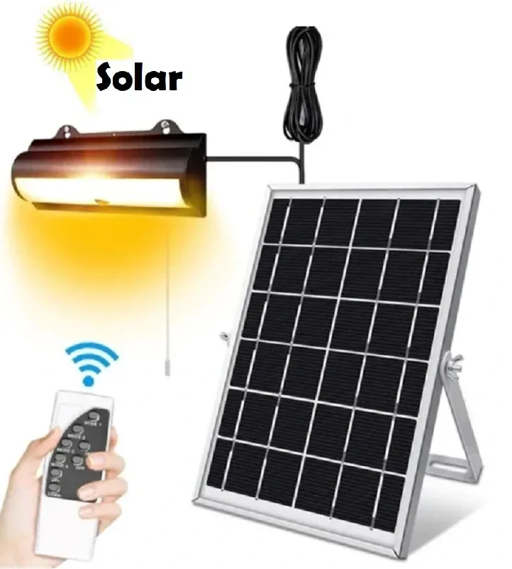 Solární osvětlovací systém s dálkovým ovladačem je určeny jako funkční dekorace k osvětlení zahrad, pergol pro kempink atd. Napájení ze solárního panelu. Vhodné k instalaci na stěnu.