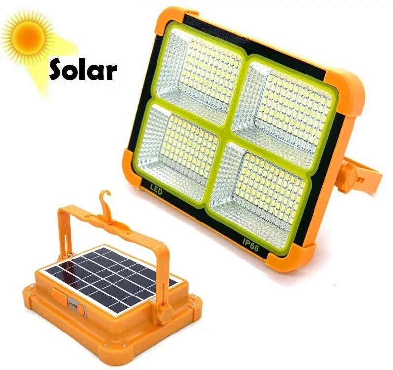 Přenosné solární světlo s praktickým stojánkem pro přenos nebo nastavení do pracovní pozice. Dosah světla cca 7 metrů. Světlo lze ovládat on/off vypínačem, opakovaným stiskem lze nastavit svícení čistých bílých diod, teplých bílých diod, svícení teplých i bílých diod současně a výstražné SOS svícení červených a modrých diod. Pracovní doba na plné nabití cca 4-12 hodin dle zvoleného režimu svícení. Světlo lze nabíjet též USB kabelem pomocí běžné nabíječky mobilních telefonů a lze jím též mobilní telefon nabít.