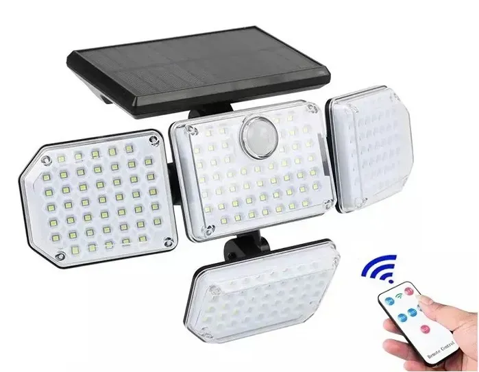 LED osvětlení se solárním panelem, dálkovým ovladačem a nastavitelným pohybovým čidlem,