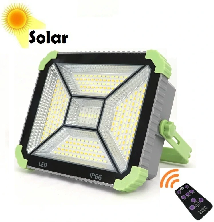 Přenosné solární světlo s oddělitelným solárním panelem a 3,5metru dlouhým kabelem pro ideální nastavení nabíjení. Praktický stojánek pro přenos nebo nastavení do pracovní pozice. Dosah světla cca 7 metrů. Světlo lze ovládat dálkovým ovladačem nebo on/off vypínačem, opakovaným stiskem lze nastavit svícení čistých bílých diod, teplých bílých diod, svícení teplých i bílých diod současně a výstražné SOS svícení červených a zelených diod. Pracovní doba na plné nabití cca 4-12 hodin dle zvoleného režimu svícení. Světlo lze nabíjet též USB kabelem pomocí běžné nabíječky mobilních telefonů a lze jím nabít mobilní telefon.
