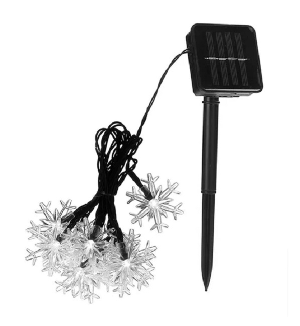 Solární vánoční řetěz - teplá bílá, 30LED vločka/6,5Metrů