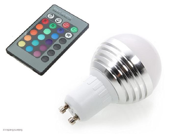 - RGB LED Žárovka 3W kulatá GU10 - 3 kusy