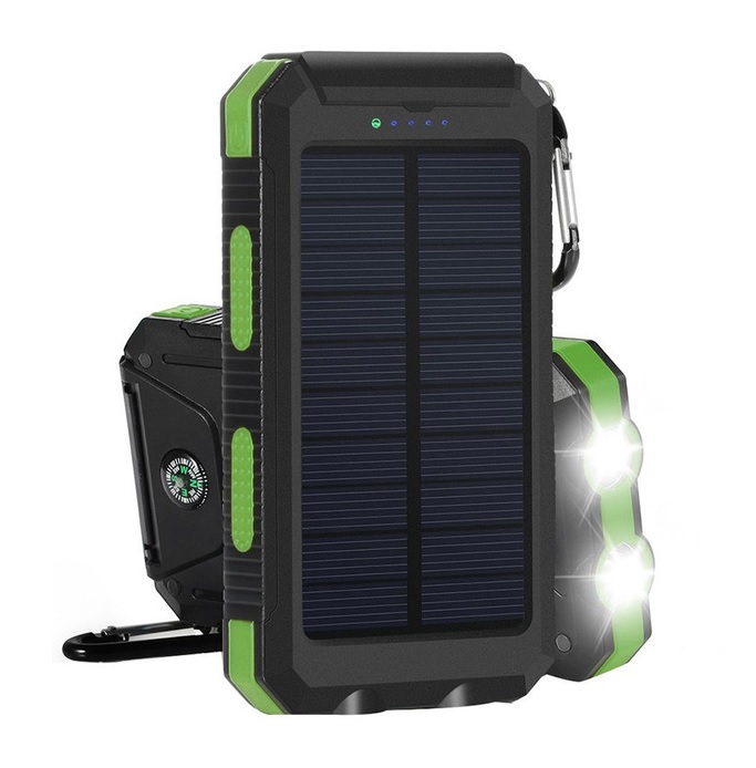 Univerzální solární nabíječka s vestavěnou baterií o kapacitě 10000mAh, vhodná jako záložní zdroj pro mobily, GPS, MP3 a další elektroniku. Lze nabíjet pomocí solárního panelu, přiloženého USB konektoru přímo z PC nebo lze použít k nabití nabíječku mobilního telefonu.