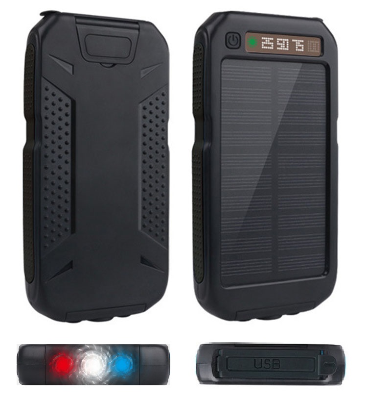 Univerzální solární nabíječka s vestavěnou baterií o kapacitě 10000mAh, vhodná jako záložní zdroj pro mobily, GPS, MP3 a další elektroniku. Lze nabíjet pomocí solárního panelu, přiloženého USB konektoru přímo z PC nebo lze použít k nabití nabíječku mobilního telefonu.