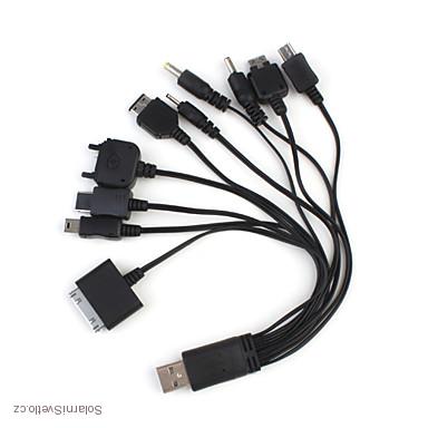 Univerzální USB napájecí kabel s 10ti konektory pro všechny nejběžnější mobilní telefony, GPS navigace, MP3 a MP4 přehrávače.