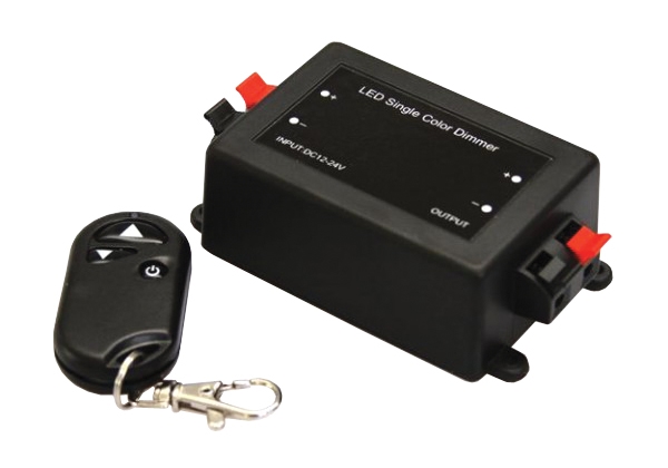 Jednokanálový stmívač na dálkové ovládání umožňuje upravovat intenzitu jasu (0-100 %) LED pásků či žárovek 12V. Stmívač má funkci zapnout/vypnout. Přijímač může být ukrytý (za zdí, sádrokartonem či ve skříni), není nutná přímá viditelnost přijímače pro ovladač. Při zapojení je potřeba dodržet polaritu (+/-), nesprávné zapojení může zařízení zničit.