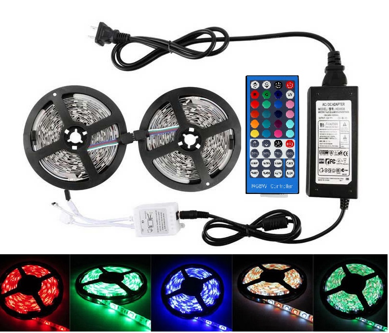 Set obsahuje 2x LED pásek 150x LED diod 5050 RGB a 150x LED diod 5050 teplá bílá.