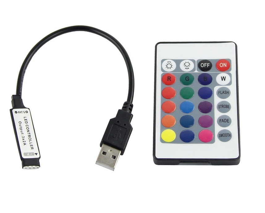 Dálkový IR ovladač a přijímač k RGB USB LED pásku - 24 tlačítek
